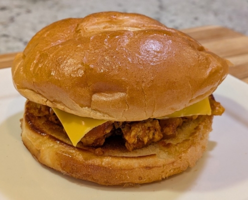 Juicy chicken and crispy bacon patties infused with fresh rosemary are topped with zesty lemon-garlic aioli and your favorite fixings.