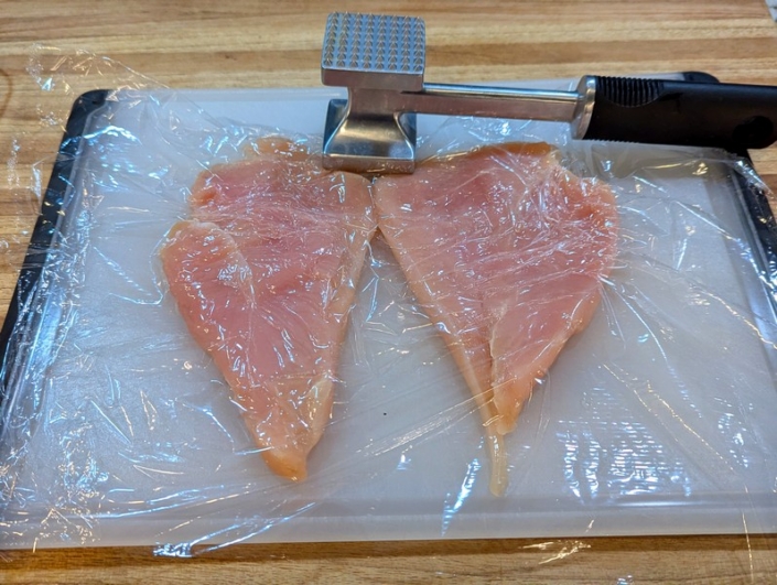 Butterfly the breast, cut into 2 even pieces. Pound to ¼” thick.