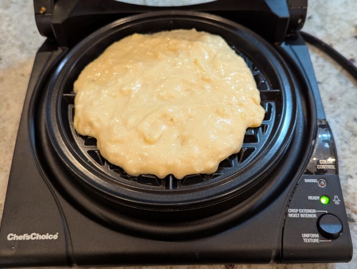 Pour the batter into the waffle iron and cook according to the manufacturer’s instructions, making 2 waffles.