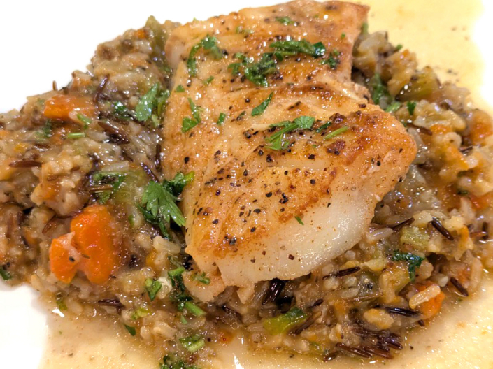 Pan-Seared Lemon-Butter Cod with Wild Rice Pilaf