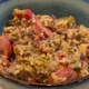 In the same skillet, add 1 tbsp olive oil (or more if needed). Sauté 2 garlic cloves, ½ red onion (sliced), and 6 mini sweet peppers (sliced) for 2–3 minutes until softened. Add ½ cup cherry tomatoes and cook another 1–2 minutes. Add 2 spiralized zucchini noodles and toss for 1–2 minutes until just tender but not soggy. Season with a pinch of salt and pepper.